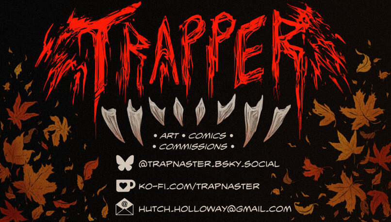 Hutch "Trapper" WadeCoyote manthing that's extremely interested in and infatuated with horror as a whole, but especially monster design and practical gore fx. Some of my favorite things to draw are gore and body horror, strange and offputting creatures, and the characters that live in my head.I love fishing, art, fiddling, coyotes, my cats, and both my work as a comic artist and as an MLT.-CURRENT PROJECTS